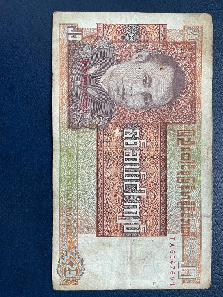 El país de Birmania, pasó a denominarse Myanmar en 1989, cambio realizado por la junta militar que tenía el poder al entender que aglutinaba a todas las etnias y no sólo a los birmanos. Actualmente el Kyat es su moneda, que se divide en 100 pyas.