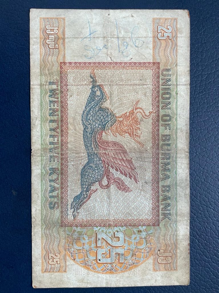 Este billete lo incluyo tanto en la pestaña de Myanmar (Birmania) como en la de Japón, ya que si bien se emite por Japón, se hace durante la ocupación de Birmania por este país, y circula por el interior de Birmania. Todo esto lo dejo detallado en la pestaña «billetes con historia».