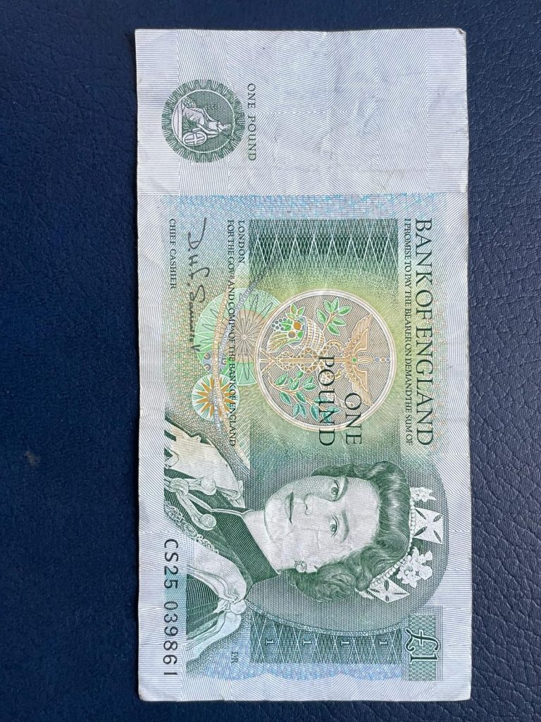 Billete de 5 new pence de Reino Unido 1972, 6ª serie. Las Fuerzas Armadas Británicas emitieron sus propios billetes desde 1946 hasta 1972. La sexta serie se utilizó en Berlín hasta el 31 de diciembre de 1979, cuando finalmente fueron retirados.