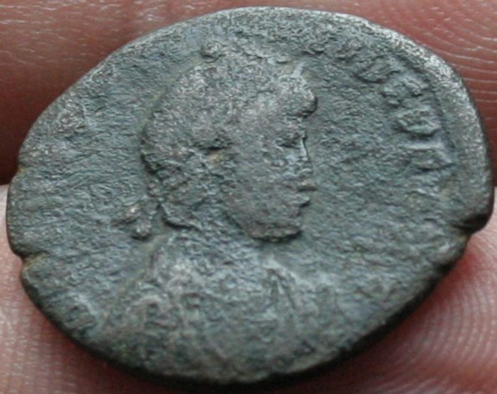 Un decargiro de Honorio acuñado entre el 393/5 d C. Es una pieza muy común. En teoría en este tipo de pieza debería aparecer: